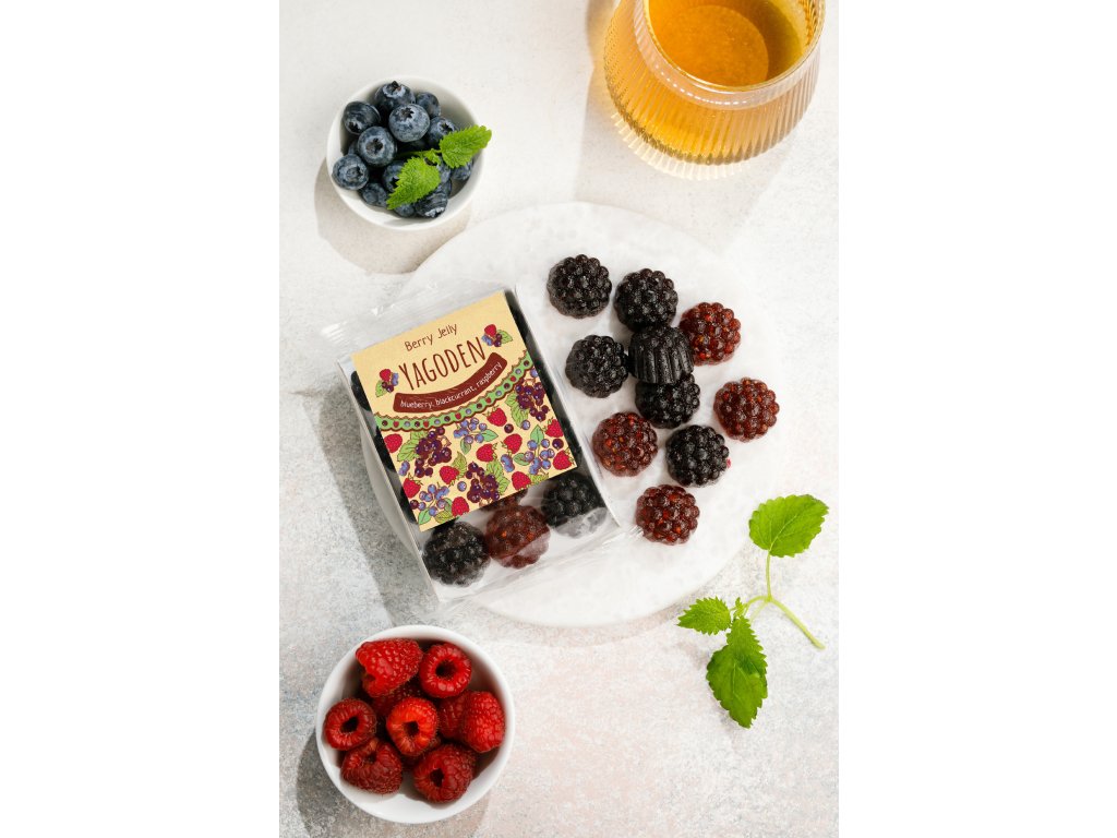 Zutaten: Zucker, Glukosesirup, schnellgefrorene Himbeeren, Schwarze-Johannisbeer-Püree, Heidelbeerpüree, Apfelpüree, Pektin (Geliermittel), Zitronensäure (Säureregulator), Überzugsmittel (pflanzliches Öl, Carnaubawachs). Kann Spuren von Erdnüssen, Sesam, Getreide, Eiern und anderen Nüssen enthalten.